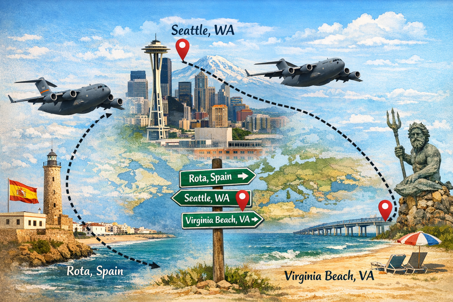 Example: After hopping from Rota to McCord, we drove to Whidbey and caught a Det flight to Oceana. Even with hotel + airfare for 5, we saved over $2,700 compared to flying commercial from Spain to Virginia.